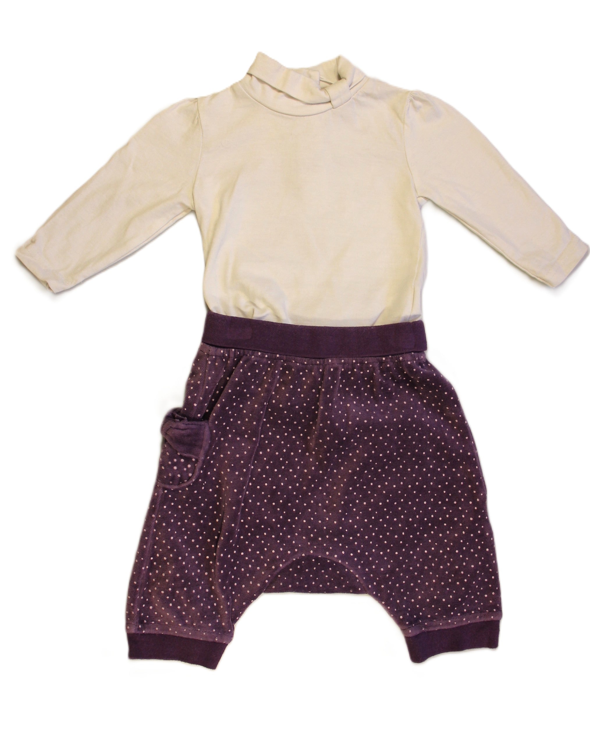 - D'un pantalon toucher velours taille élastique. Marque "Orchestra"