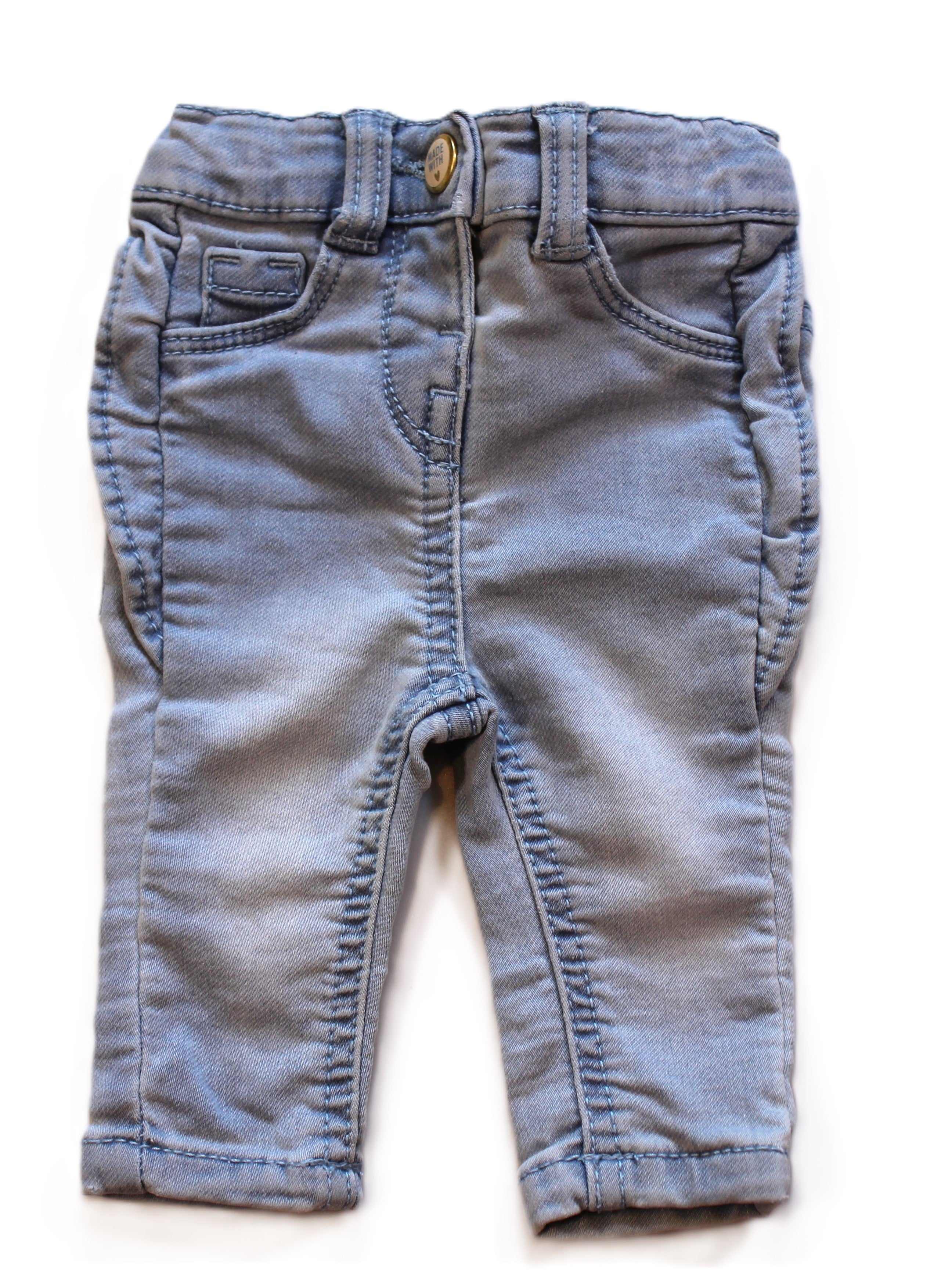 - D'un jeans taille réglable. Marque "Kiabi"